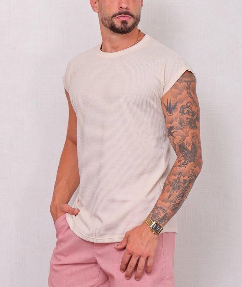 Regata masculina confeccionada em tecido premium com textura que remete ao tricot.