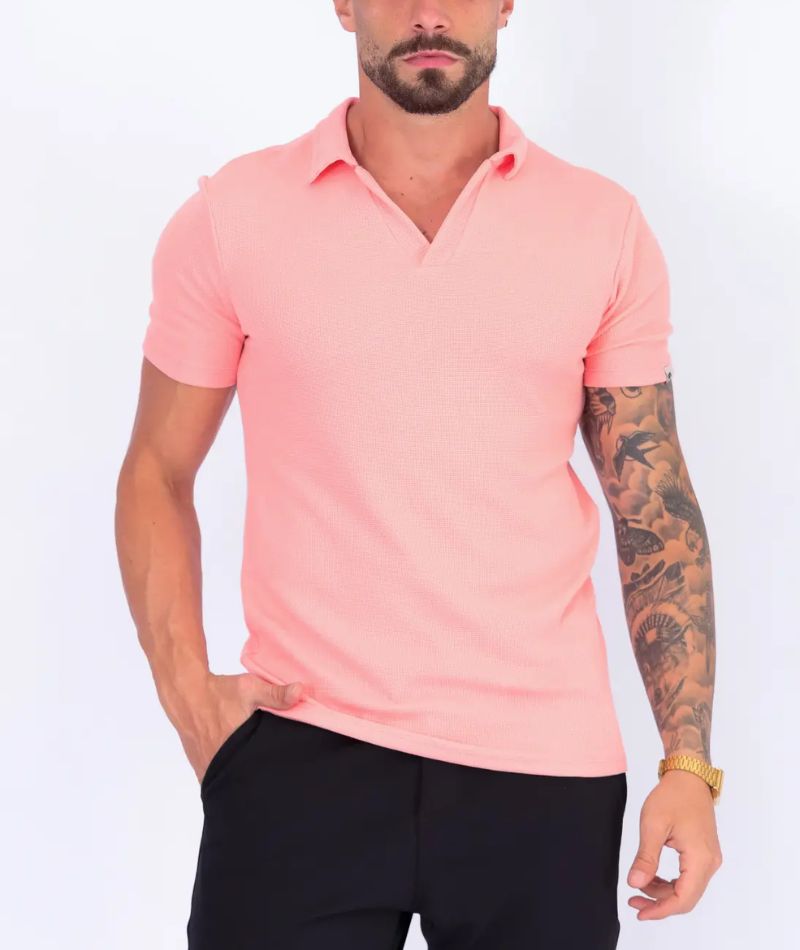Com uma modelagem slim, essa polo proporciona um caimento moderno, valorizando sua silhueta e adicionando um toque de elegância ao seu visual. Uma peça essencial no guarda-roupa masculino, projetada para te acompanhar de maneira versátil e atemporal.