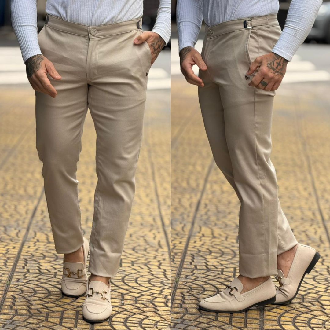 Calça alfaiataria Relax com Ajuste Lateral Bege